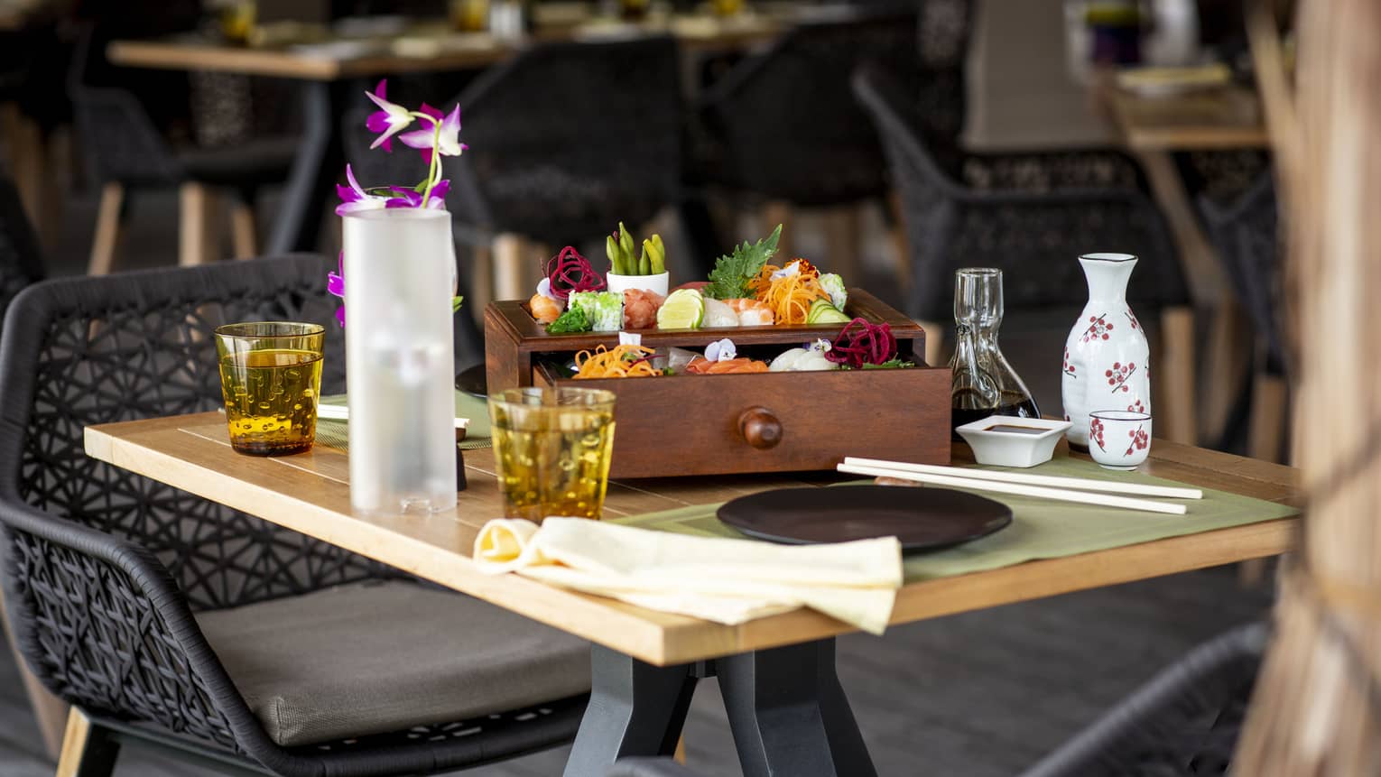Huraa 咖啡厅是体验现代泛亚洲美食的绝佳去处。餐桌间距宽敞,还可欣赏无边泳池和远处大海的迷人景色,私密的面对面用餐或热闹的家庭聚餐皆相宜。