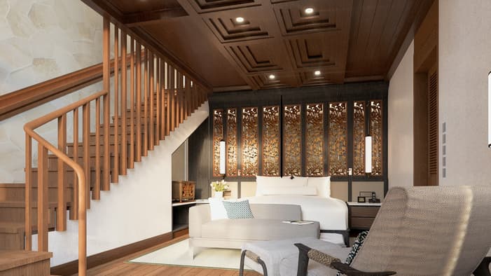 尊荣尽显的特色别墅拥有酒店数一数二的开阔空间和迷人景致。