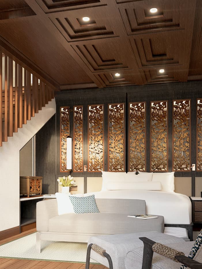 这间复式单卧套房提供温馨舒适的住宿环境,设有宽敞的阳光露台和以当代元素装饰的豪华浴室,非常适合寻求充裕休憩空间的情侣下榻。