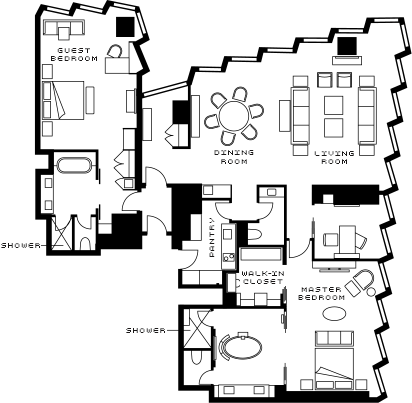 这些转角套间俯视着著名的世宗路,光线明亮,不论是举办晚餐宴会,还是与家人朋友休闲小聚,都是理想之地。全景落地窗环绕着宽敞的起居用餐区,一直延伸至两间卧室,每间卧室都位于套房相对的两侧,最大程度保持私密性。