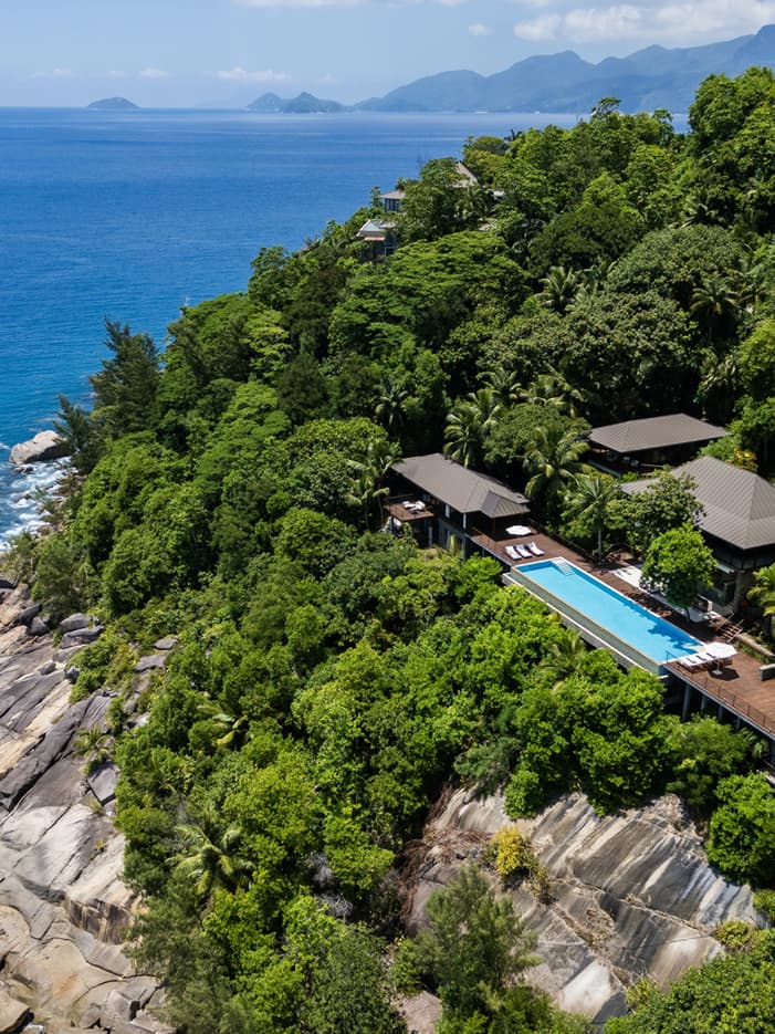 这座气派非凡的多层别墅住宅雄踞于私密备至的悬崖之畔,隐匿于婆娑摇曳的棕榈树间,坐拥比提昂斯海湾的壮丽全景,是多代家庭出游的理想下榻之选。所有卧室均俯瞰着印度洋的蔚蓝碧波,距离别墅中心的开阔无边际泳池、厨房和采光充足的客厅也仅数步之遥。无论是享用专属厨师精心烹制的佳肴美馔,还是在海景平台上伴着海浪的声声低吟共饮日落鸡尾酒,皆是令人难以忘怀的美妙瞬间。