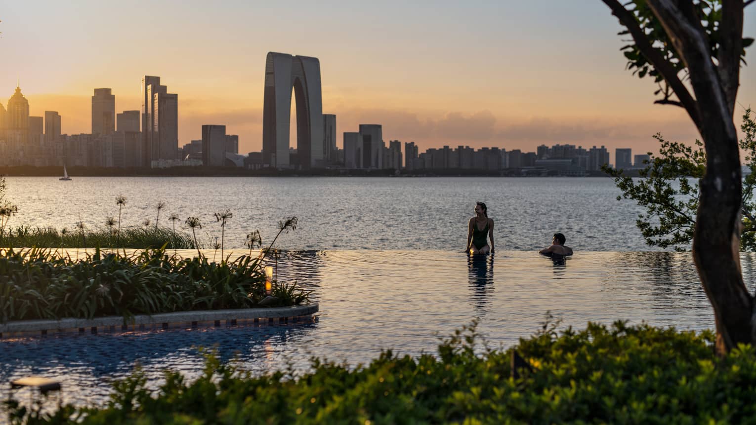 湖畔无边泳池徜徉于绝美湖畔无边际泳池,宛若悬浮金鸡湖碧波之上,尽揽浩渺湖景全景与苏州城市天际线的惊艳风光。