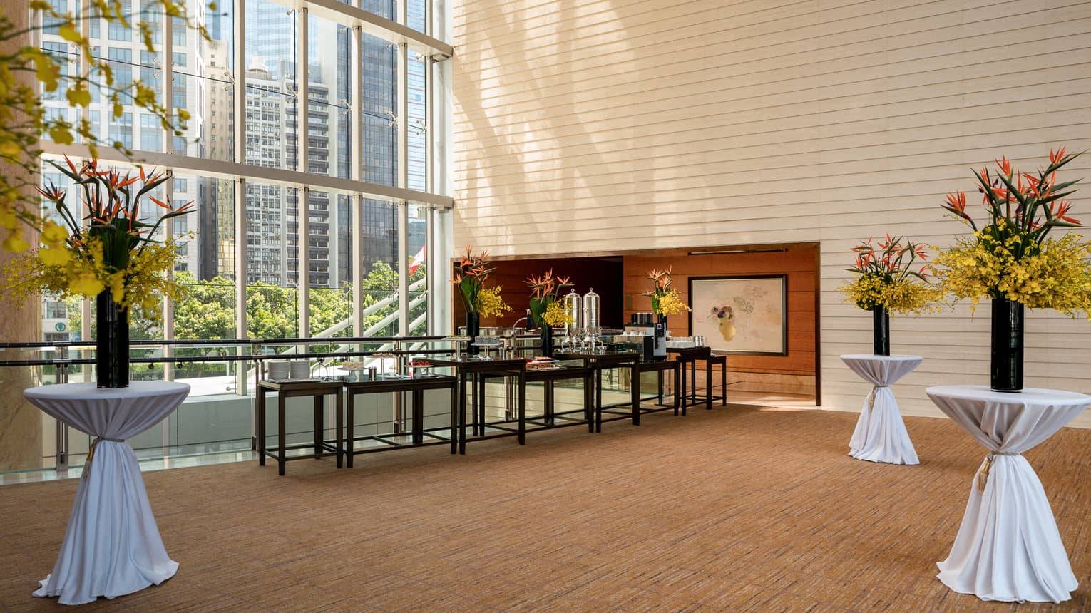四季大禮堂迎賓區在四季大禮堂迎賓區舉辦歡迎宴會或活動前雞尾酒會,為主要活動熱場。陽光透過六層樓高的玻璃幕牆灑入室內,營造出溫馨迷人的氛圍。